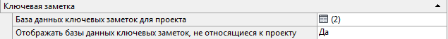 - Для свойства "Отображать базы данных ключевых заметок, не относящиеся к проекту" определите, следует ли, кроме баз данных ключевых заметок, заданных для проекта, отображать все базы данных ключевых заметок, упоминаемые на вкладке "AD-библиотека" диалогового окна "Параметры".
