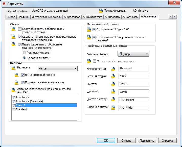 | Описание | Переменная | Размерный стиль AutoCAD (в метрах) | Размерный стиль AutoCAD (в миллиметрах) |