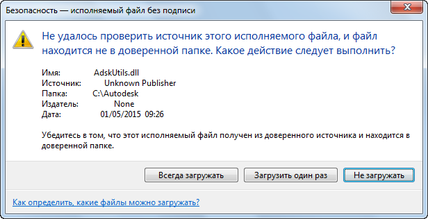 Решение. Загрузите и используйте файл. (Необязательно) Можно указать издателя в качестве доверенного, чтобы при последующей загрузке файлов с подписью этого издателя сообщение с предупреждением не отображалось.