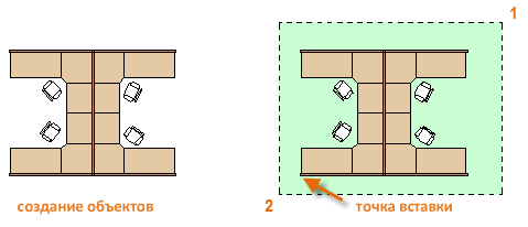 Обратите внимание, что при вставке блок прикрепляется к курсору в указанной точке. Это местоположение называется точкой вставки. По умолчанию точка вставки находится в исходной точке (0,0) исходного чертежа.