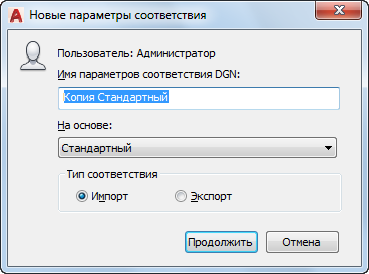 Задание соответствия для импорта или экспорта файлов DGN.