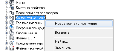 1. На вкладке "Адаптация" панели "Адаптации <имя файла> щелкните правой кнопкой мыши узел "Контекстные меню" и выберите "Новое контекстное меню".