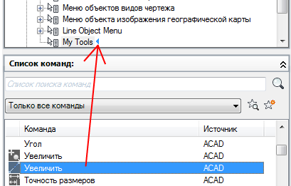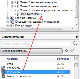 Чтобы вставлять параметры меню, относящиеся к активной команде в контекстном меню, необходимо использовать псевдоним COMMAND_имя_команды. Текст имя_команды может являться именем любой команды. Например, если требуется отображать опции меню в контекстном меню при работе с командой ОТРЕЗОК, можно использовать псевдоним СТРОКА_ОТРЕЗОК.