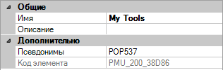 4. В разделе "Отображение" панели "Свойства" измените требуемым образом значения свойства "Имя" (не "Имя команды" или "Выводимое имя команды").