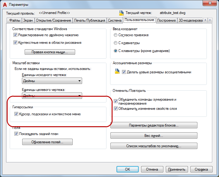 Включите отображения информации о гиперссылке на вкладке "Пользовательские установки" диалогового окна "Параметры".