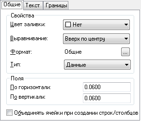 Задание расстояния между границами и содержимым ячеек. Параметры отступа от границ ячеек применяются ко всем ячейкам таблицы. Значение по умолчанию для отступа равно 0,06 (британская система) или 1,5 (метрическая система).
