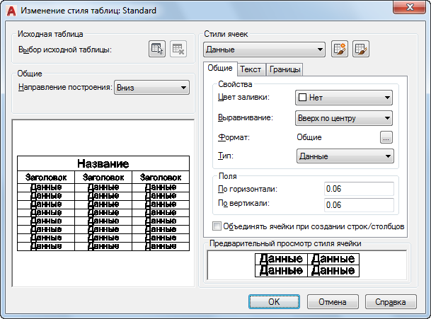 Этот параметр позволяют выбрать на чертеже таблицу для применения в качестве образца при форматировании данного стиля таблиц. После выбора таблицы можно указать элементы структуры и содержимого, которые требуется скопировать из этой таблицы в стиль таблиц.
