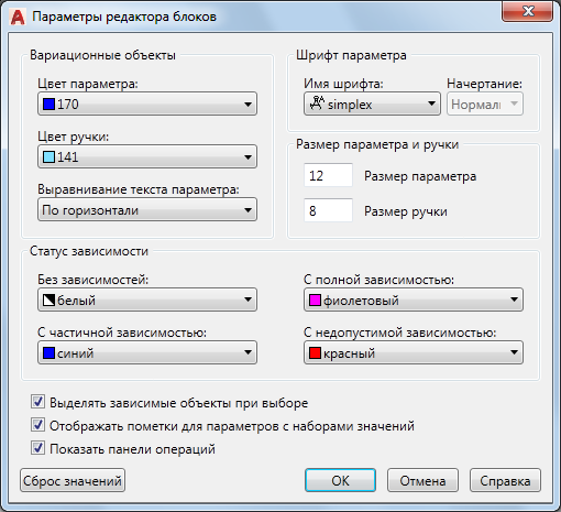 Восстановление значений по умолчанию для параметров редактора блоков.