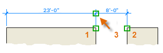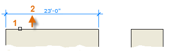 Для размера 8'-0", представленного ниже, можно использовать другой метод. Запустив команду РАЗМЕР, щелкните две конечные точки (1 и 2), затем щелкните местоположение размерной линии (3). С целью выравнивания размерных линий точка 3 была привязана к конечной точке ранее созданной размерной линии.