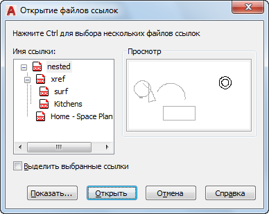 Если внешние ссылки являются вложенными, выбранная внешняя ссылка на чертеж (xref) открывается в новом окне.