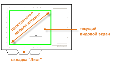 На листе при активном пространстве модели можно выполнять панорамирование и изменять масштаб, а также любые другие действия, которые доступны на вкладке "Модель".