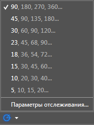 найти Полярное отслеживание Отслеживание перемещений курсора вдоль выбранных полярных углов.