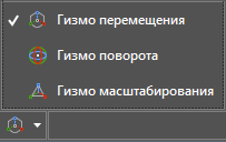 Отображает 3D-гизмо для перемещения, вращения и изменения масштаба набора объектов относительно одной из 3D-осей или относительно плоскости.