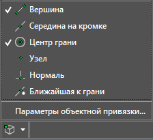 Привязка курсора к ближайшей опорной точке в 3D по мере его перемещения. Например, к вершинам, средним точкам на кромке, ближайшей к грани, и т. д.