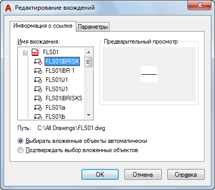 Если в списке присутствует несколько вхождений, необходимо выбрать из них внешнюю ссылку или блок для редактирования. Допускается одновременное редактирование только одного объекта.