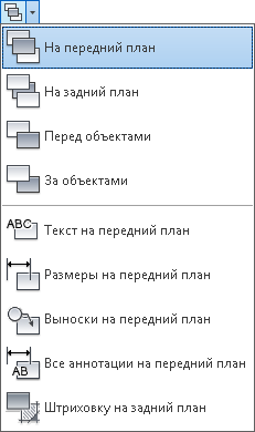 Параметры порядка прорисовки, который отображается в этом списке включают перенос всех штриховок на задний план, а всего текста на передний, и пр.