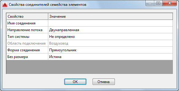 Выводится диалоговое окно "Свойства соединителей семейства элементов".