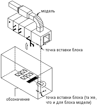 Для обеспечения правильного управления отображением обозначения при его добавлении на чертежи следует создать геометрию обозначения на слое 0, назначить для цвета и типа линий значение "ПоБлоку", а для веса линий - "ПоСлою". В качестве опорной точки расположения блока при вставке используется точка вставки или базовая точка. Точка вставки условного обозначения должна быть точно той же, что у блока 3D модели, которую оно представляет. При размещении мультивидового элемента все взаимосвязанные блоки являются частью одного объекта; поэтому требуется сохранять общую точку вставки.