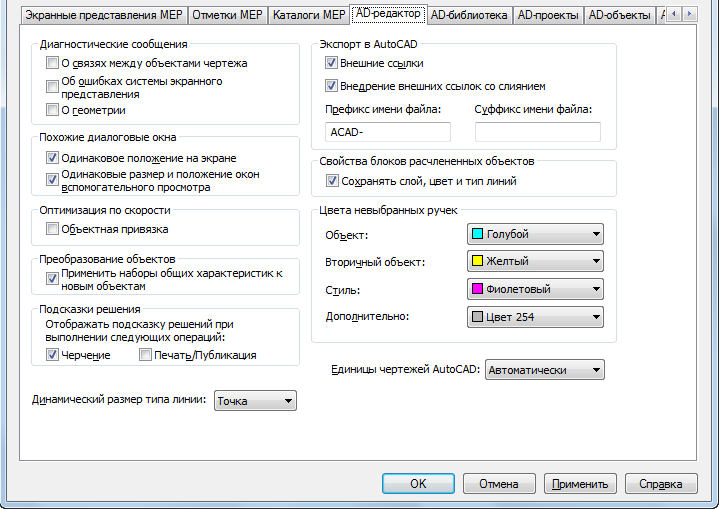 Выберите "Черчение" для отображения значков подсказок в процессе работы с файлом чертежа. Выберите "Печать/публикация" для отображения значков подсказок при выводе файла чертежа на печать или публикации.