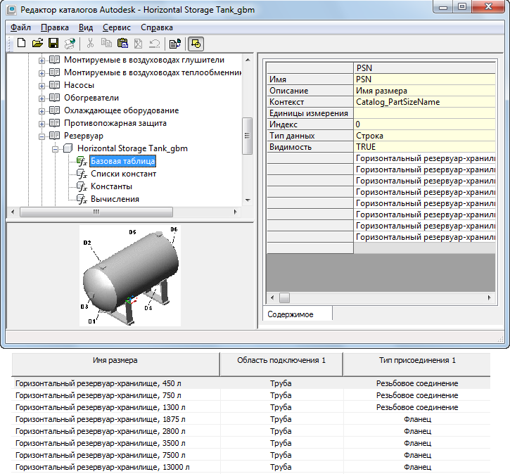 Просмотр размеров элементов в редакторе каталогов и в таблице размеров диалогового окна команды "Добавить"