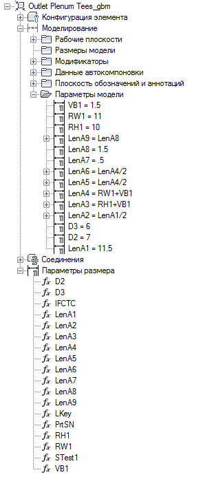 Размеры элементов для параметрического элемента определяются путем задания значений для параметров размеров в диалоговом окне "Параметры размера".