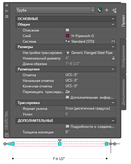 Точное моделирование длины сегмента трубы выполняется с помощью отдельных стыков. Имеющийся в палитре свойств параметр "Длина обрезки" соответствует фактической длине трубы и включает глубину, которая требуется для зацепления фланцев.
