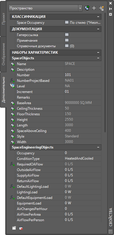 | LightingLoad | Величина осветительной нагрузки для помещении. Если в стиле пространства указано значение осветительной нагрузки на единицу площади, то набор DefaultLightingLoad рассчитывает данное значение на основе площади пространства. Это значение можно переопределить: для этого нужно просто ввести новое значение в поле LightingLoad. |