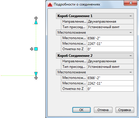 Пример сведений о соединении короба