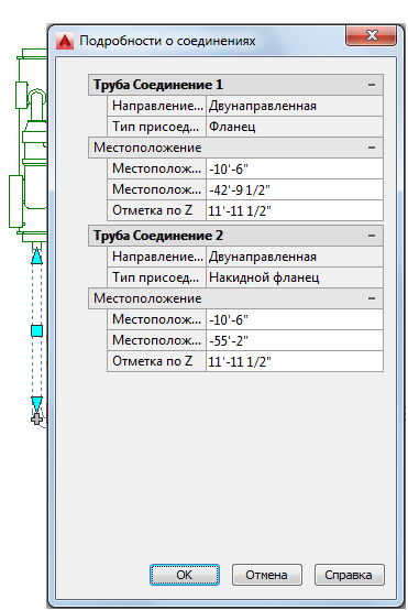 Пример сведений о соединении трубы