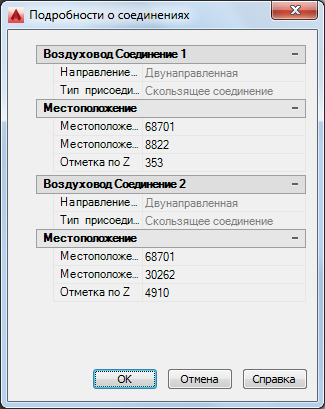Пример сведений о соединении воздуховода