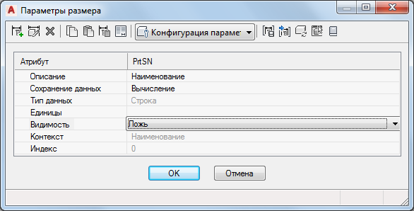 Прим.: Тип хранения данных по умолчанию для атрибута PrtSN ("Имени размера элемента") — "Таблица"; однако можно изменить тип хранения данных на "Вычисления". Определение атрибута PrtSN как вычисляемого значения позволяет определить имя каждого размера элемента на основании значений других атрибутов, например высоты и ширины, и обеспечивает дополнительные параметры в разделе "Блоки и имена" среды построения на основе блоков.