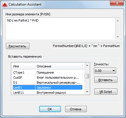 - В диалоговом окне "Calculation Assistant" определите имя размера элемента.