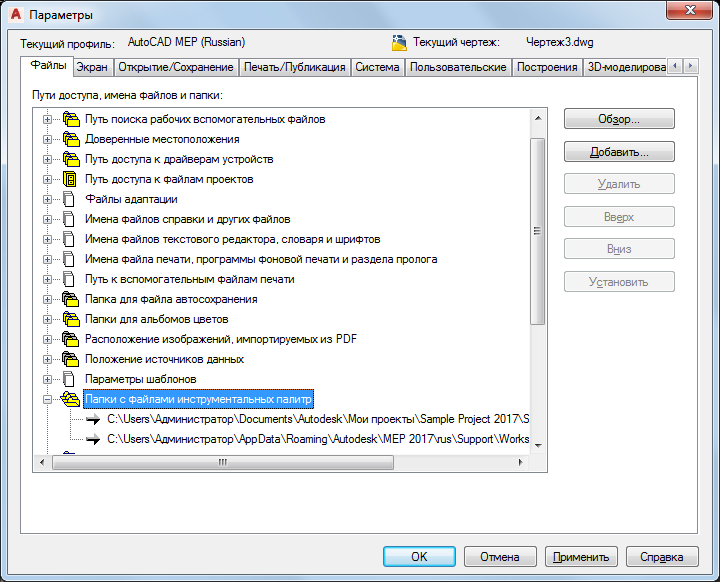 (ATC), предназначенного для инструментальных палитр, ориентированных на данный проект. При закрытии текущего проекта или назначении текущим другого проекта ориентированные на проект инструментальные палитры удаляются из списка путей.