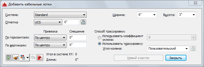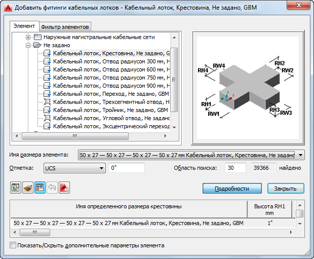 Диалоговые окна кабельных лотков и фитингов кабельных лотков