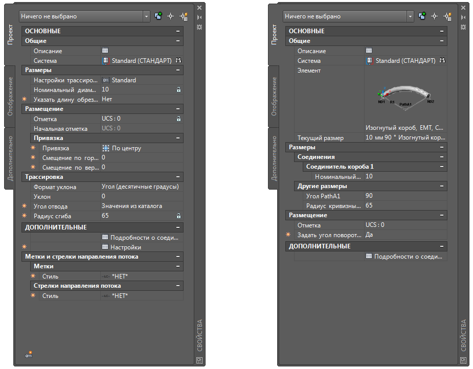 Палитры свойств короба* и фитингов короба