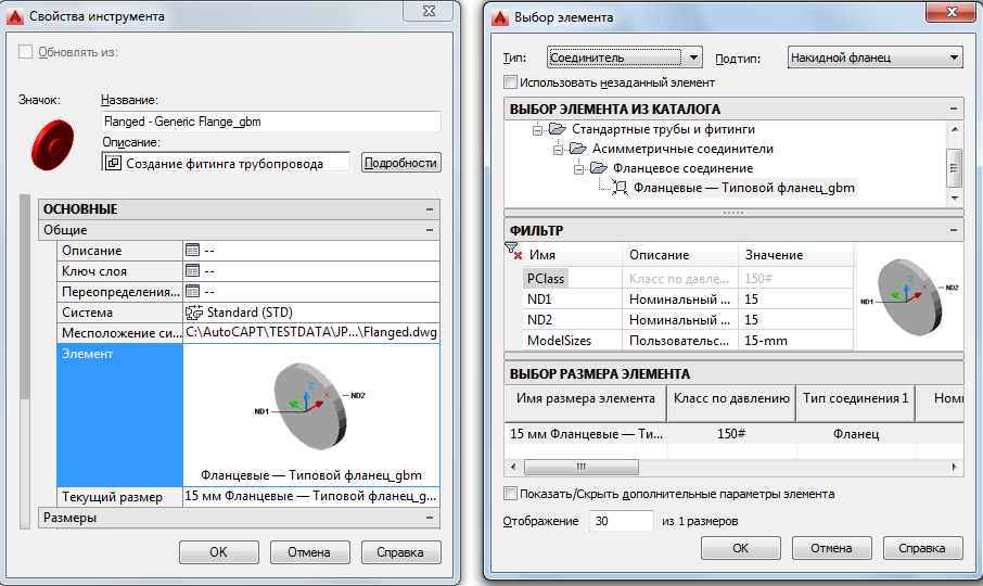Совет: Чтобы отключить в этом диалоговом окне использование выбранных элементов, установите флажок "Использовать незаданный элемент". Этот флажок позволяет создать на инструментальной палитре инструмент, не содержащий заданных свойств. Этот новый инструмент можно использовать для запуска команды объекта "Добавление фитинга" во время создания участка трубы.