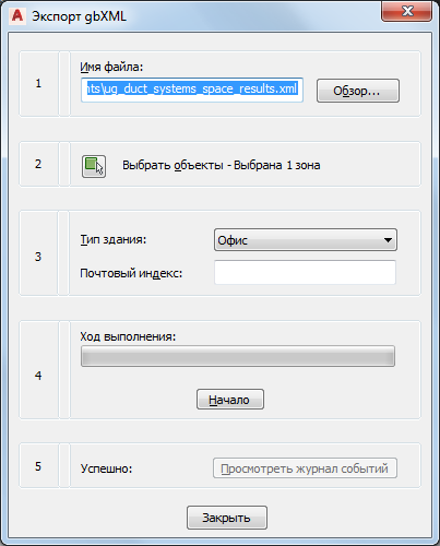 После создания помещений и группирования их в зоны можно экспортировать эту информацию в файл формата Green Building XML (gbXML) следующим образом.