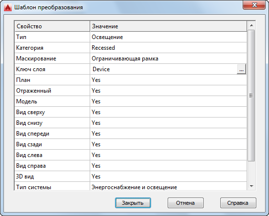 | Создать шаблон | Нажмите кнопку "Создать". В окне "Открыть файл" укажите папку для нового шаблона и введите его имя в поле "Имя файла". Нажмите кнопку "Сохранить". В диалоговом окне "Шаблон преобразования" задайте значения параметров шаблона. Нажмите "Закрыть" для возврата в диалоговое окно "Сценарий преобразования устройства". |