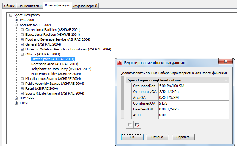 В диалоговом окне "Редактирование данных набора характеристик" отображаются значения для данной классификации.