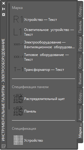 - В группе палитр инструментов электрической системы щелкните на палитре "Марка и спецификация".