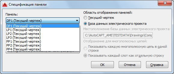 В раскрывающемся списке должны содержаться панели, назначенные в базу данных электрического проекта.