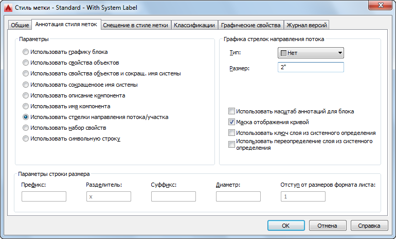 Используйте опции вкладки "Аннотация стиля меток" для задания способа отображения в метке информации об объекте.