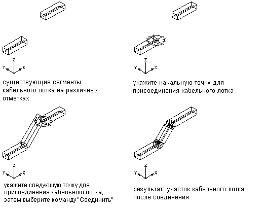 Соединение сегментов кабельного лотка, расположенных на разных отметках