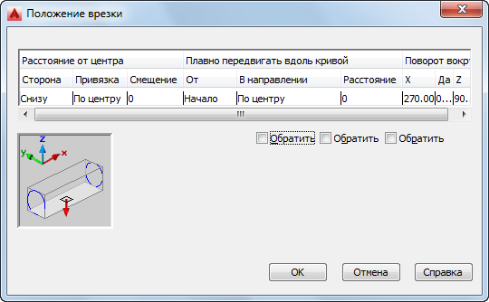 - Перемещение врезки на другую сторону сегмента воздуховода или ее поворот на заданный угол вокруг сегмента воздуховода