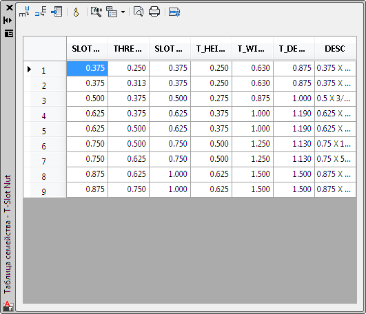 Таблица семейства — это база данных, содержащая допустимые значения параметров, которые определяют каждый компонент семейства. Каждая строка содержит описание уникального компонента семейства деталей/элементов.