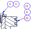 Можно создать номера позиций таким образом, что несколько номеров позиций будут иметь одну выноску. Имеется возможность задания способа выравнивания сгруппированных номеров позиций. Если по умолчанию установлен пользовательский стиль номеров позиций, группируемые номера позиций соединяются по своим границам. |
