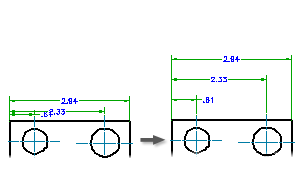 Размещение размеров вокруг внешнего контура определяется значениями расстояния от геометрии, заданными с помощью команды AMOPTIONS и системной переменной DIMDLI. При выборе размеров на обеих осях не требуется выбирать контур. Для автоматического определения контура команда использует конечные точки выносных линий.