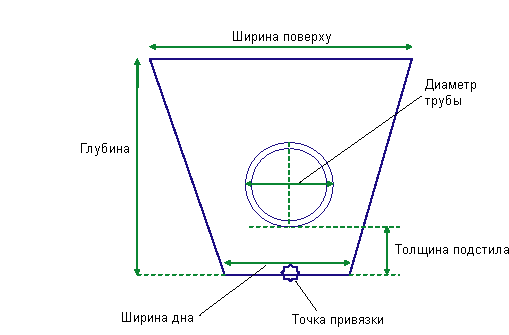 | Толщина подстилающего слоя | Глубина подстилающего слоя для трубы над дном траншеи | Числовое, положительное |
