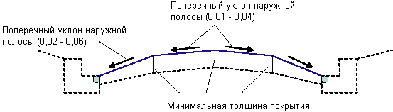 Внутренний и наружный поперечные уклоны дорожного покрытия