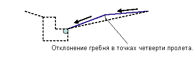 Минимальное отклонение гребня в точках четверти пролета. |